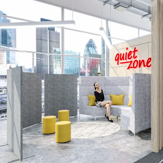 It’s common for modern offices to opt for open plan layouts as they are the best way to create collaborative environments with great communication throughout multiple departments. However, office acoustics are easily harmed by the open plan designs and little to no soft furnishings. Without absorbent materials, all the background noise of an office – typing, mouse clicking, kettles boiling, coworkers talking etc… can quickly build up and create an uncomfortable working environment for employees.